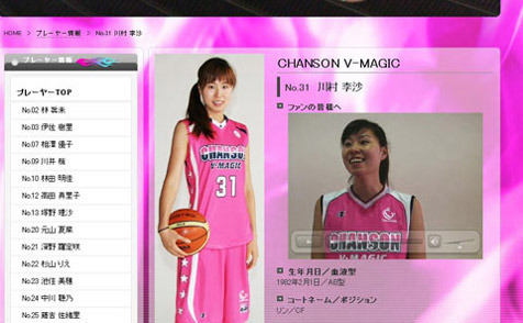 川村李沙现在效力于日本Chanson化妆品公司俱乐部队,她在场上的位置是中锋和大前锋,绰号“林”,在日本比赛中她场均可以得12.6分、篮板6.5个。