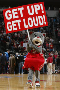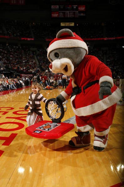 和湖人吉祥物打架, 结果眼睛被打肿了。。。丢人啊