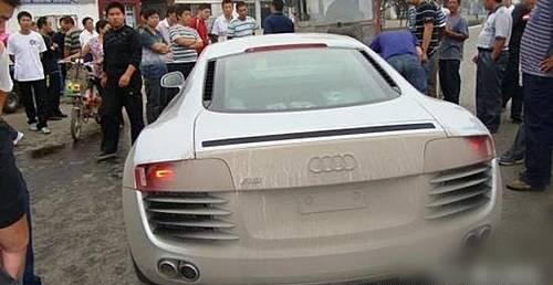 悲剧 还没上牌的奥迪R8被拖拉机撞了!