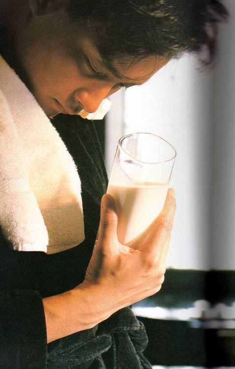 哥哥起床後要喝一杯奶