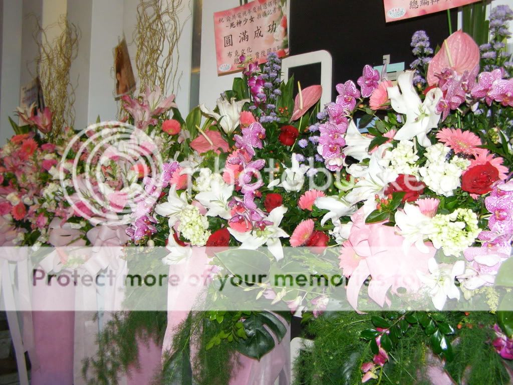 会场的花海可用壮观形容,大约数了一下,约150座花篮