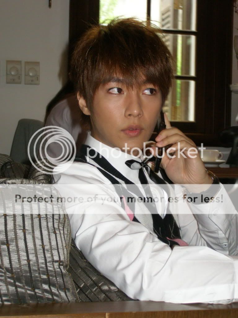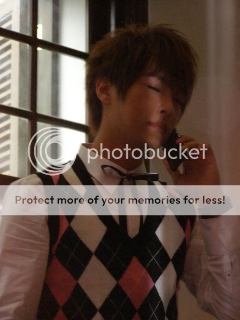 也许脖子太纽了,乾脆站起来面对著我讲电话,我猛按快门