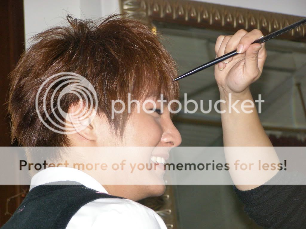 后来准备进场了,美妆师做最后的整理,亚纶还是笑的很开心