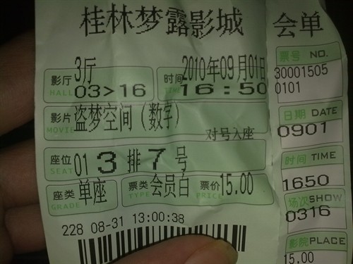 ★★★★★<盗梦空间晒票专贴>★★★★★★★★★