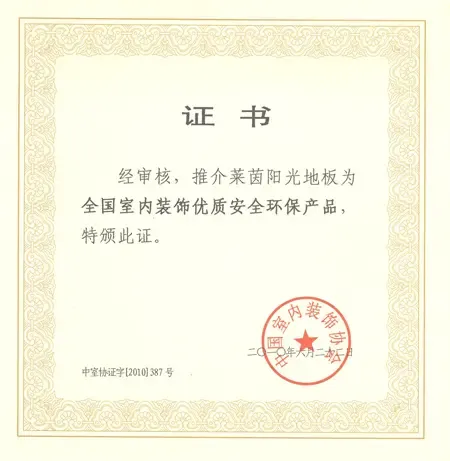 莱茵阳光地板 荣获全国室内优质安全环保产品称号