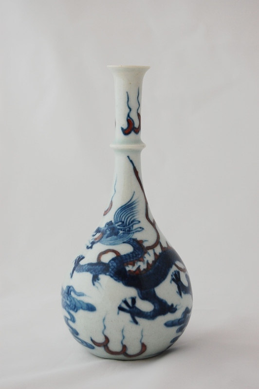 一叶知秋款,你这东西不错啊,看最后一张,红彩是在釉下么?如果是,这是件康熙民窑青花釉里红的东西,得值个几千。