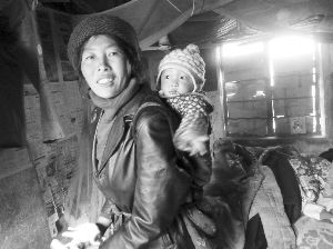 沙阿甘的妈妈背着小女儿