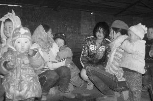 大人小孩聚在窑洞里取暖聊天